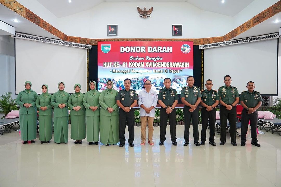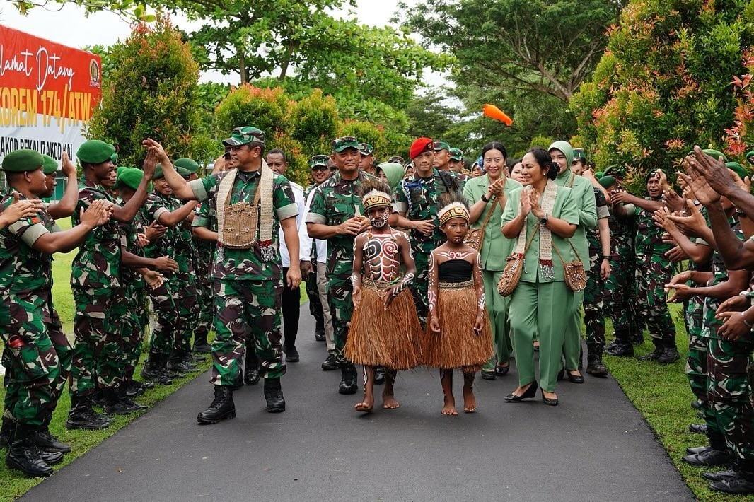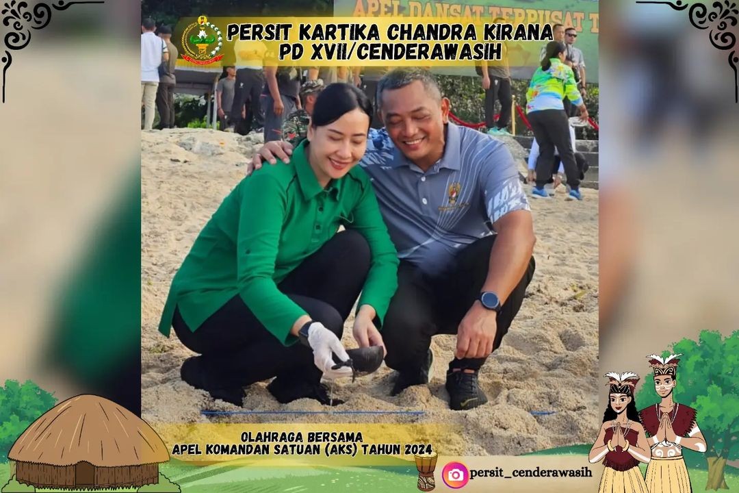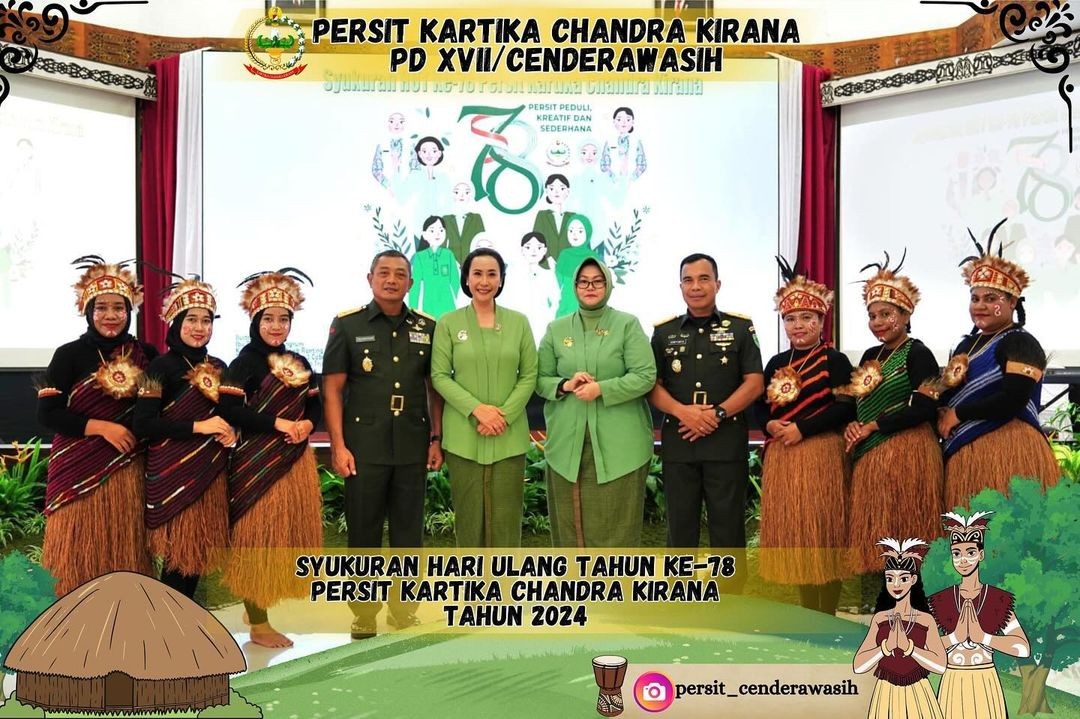 Kasdam XVII/Cenderawasih Brigjen TNI Hariyanto beserta Wakil Ketua Persit Kartika Chandra Kirana Daerah XVII/Cenderawasih, Ny. Widya Hariyanto melaksanakan olahraga Senam dan Jalan Santai dalam rangka memperingati HUT . . . 0